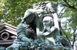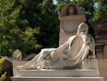 Today, I took Dan’s suggestion and visited Pere Lachaise, the biggest and most famous cemetery within Paris proper. Only wandered through half of it in four hours. A challenging place to photograph … not only was almost everything in shade, the rest was in blinding light, and even in the shade, the light was harsh. Plus the cemetery was so full that it was inevitably cluttered. Literally packed with grave markers, most not more than three inches apart. I want to go back another morning in better light, but I think I still managed to get a few decent shots. Most people were just trying to see the graves of the famous, but I was only interested in what was beautiful. I did have to laugh at the thought of the German couple who asked me if I knew where the grave of Edith Piaf was, and I replied in French without thinking, “I don’t know.” Click on any pic below to enlarge and see in a gallery view.