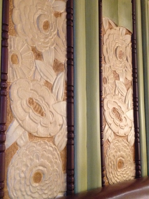 The art deco interior is amazing. Peach and mint green, with inset plaster panels and a gorgeous ceiling. The waiter tells me it was built in 1930, which seems about right. He apologizes for his English, but it’s relatively good. He’s quite sweet. He brings me the specials and there’s one with wok-fried vegetables for 13.50E. Vegetables? For realz? I’m in!